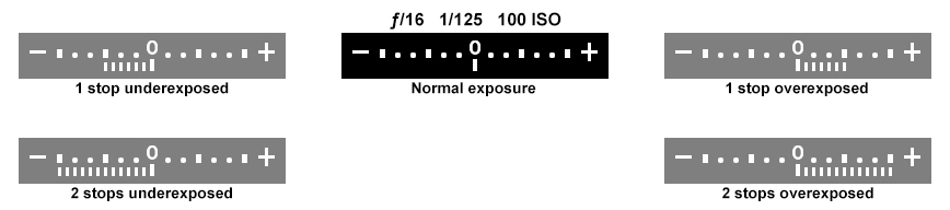 The Shutter Speed, Aperture and ISO represent the Exposure Triangle and when the Exposure Indicator is set to zero these three items are in balance creating the proper exposure. Changing the value of one requires adjustment of the other two settings, otherwise, the exposure will be overexposed (too light) or underexposed (too dark).