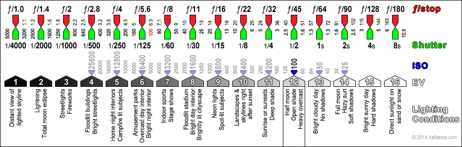 Each combination of shutter speed and ƒ/stop are equivalent exposures producing the same amount of light reaching the image sensor but create different results in the photograph.